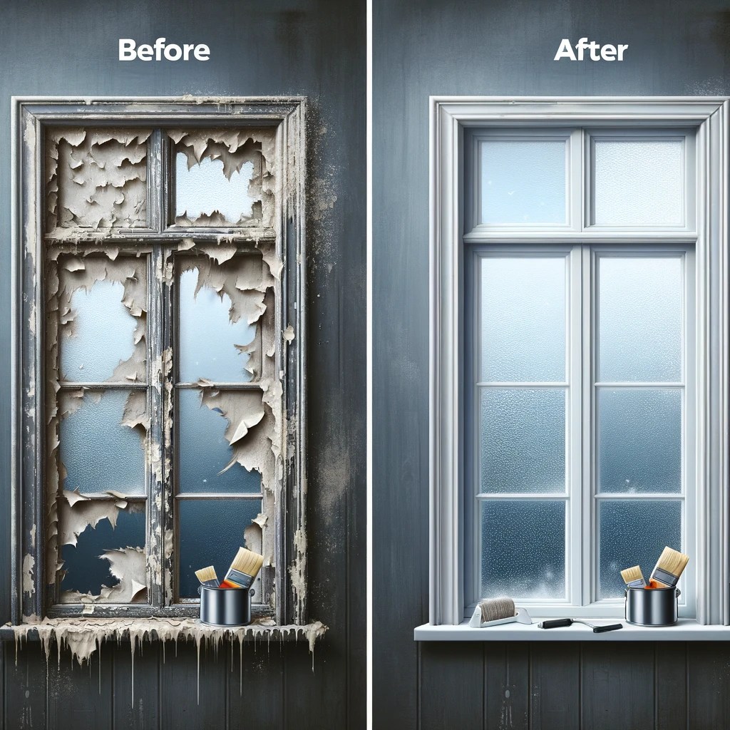 - After: The same house revitalized with fresh exterior paint, neatly trimmed landscaping, a new front door, and a clear, welcoming walkway.